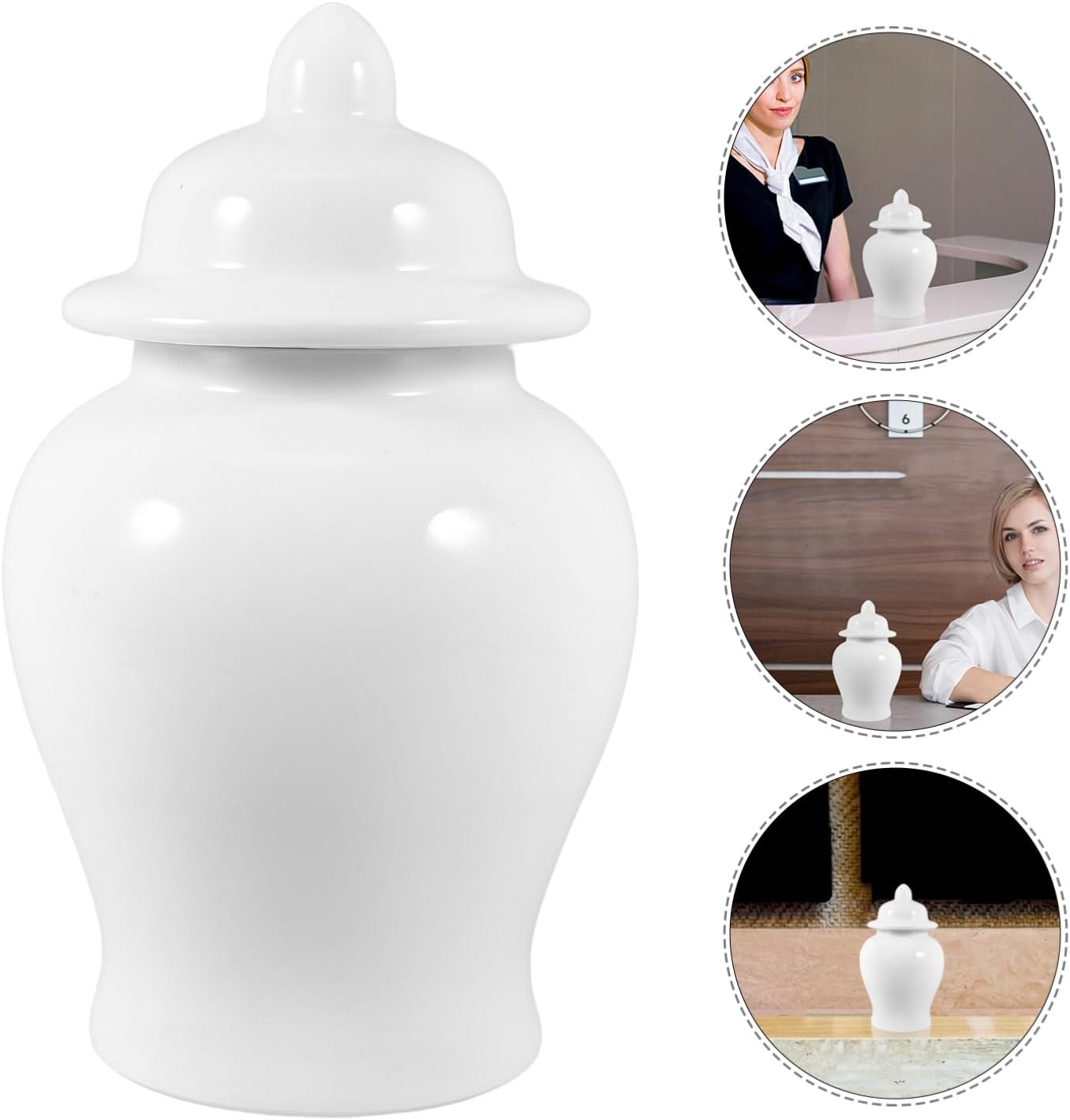 Package List 1 x ceramic jar decoration Characteristics -Color:White ginger jars for home decor -Stylish: for enhancing the decor of offices, home, and hotel decorative ginger jars -Unique: The unique design brings an elegant and sophisticated flair to any space decorative jar -Each piece is meticulously crafted: reflecting elegance and performance ginger jar with lid -Crafted from ceramic: it offers a and decorative option ginger jar -Size:24.80X15.10X15.10cm/9.75X5.93X5.93in ornaments for living room -Seamlessly with various interior styles: elevating the overall aesthetic of home ginger jars -Material:Ceramic ceramic ginger jarGoods Informationceramic ginger jar Add a touch of sophistication to your home with our Ceramic Jar, making it an ideal decorative item for offices, home, and hotel.porcelain jar The unique design and ceramic material ensure it fits seamlessly into any decor, enhancing the overall ambiance